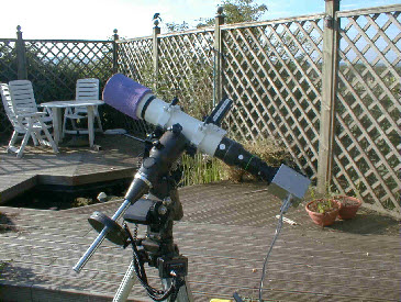 I had my ETX90, and for 1st and 2nd contact used a 20mm Meade SP4000 lens. I used an unmodified Toucam Pro webcam with a Baader IR blocking filter for 3rd and 4th contact. The solar filter was made using Mylar 10-5 film over a hole in a block of polystyrene and fits snugly over the front of the ETX90.